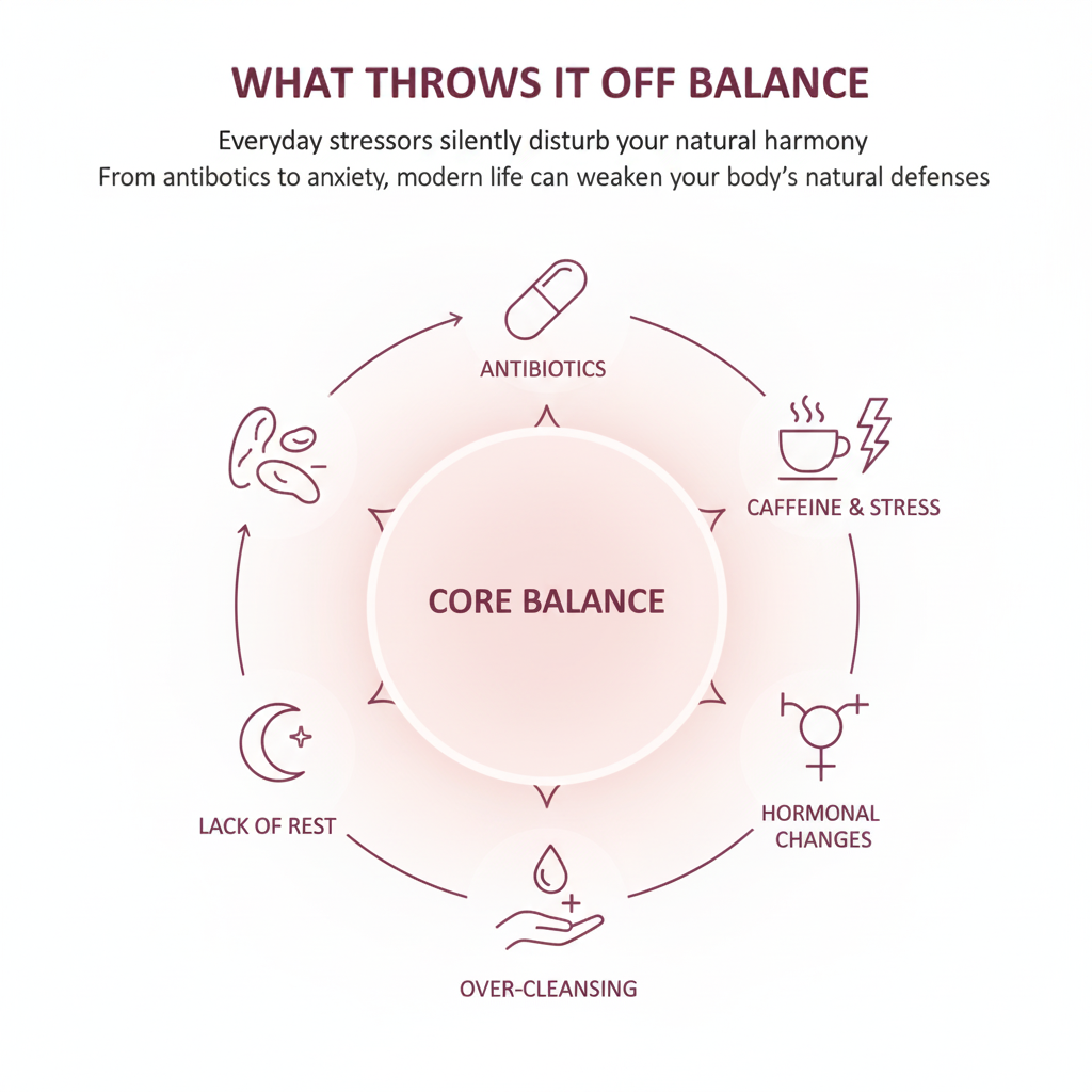 Your vagina has its own ecosystem—delicate, protective, and self-regulating. Everyday stress, antibiotics, hormonal changes, or even tight clothing can throw that balance off.